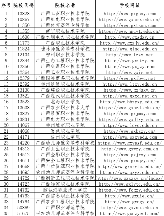 广西公办高职高专院校招生联盟2022年高职对口中职自主招生联合测试院校成员名单